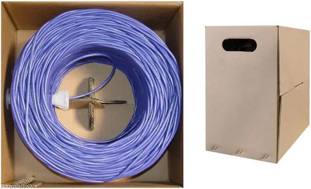 1000 foot Bulk Cat6 Purple Solid Ethernet Cable Pullbox, UTP (Unshielded Twisted Pair). This cable is a purple UTP (Unshielded Twisted Pair) solid cable. The individual conductors are 23 AWG (American wire gauge) solid pure copper. Pure copper conductors provide the best signal possible. Cat6 cable includes a spline to help ensure separation between the pairs which limits cross talk. Our Cat6 Ethernet cable exceeds the EIA/TIA-568-C standard.