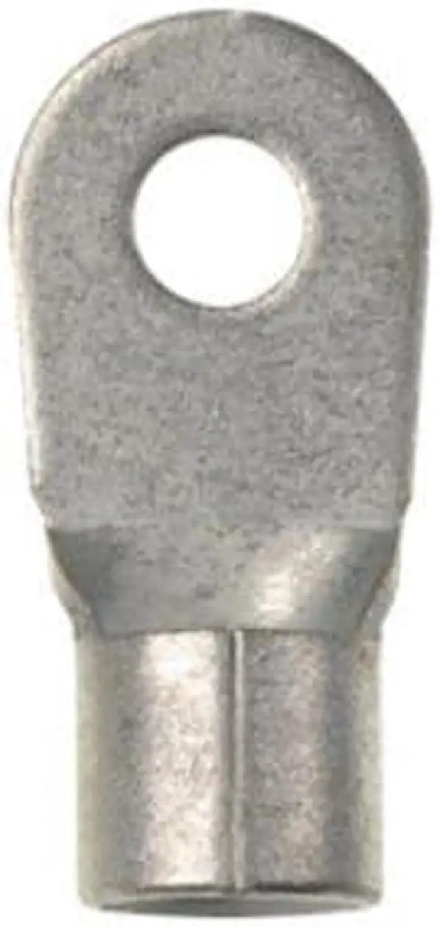 Ring Terminal, Insulation Type Bare, Stud Size 3/8 in, Wire Range 4 AWG, Insulation Color Bare, Seam Brazed, Max. Temp. 302 Degrees F, Max. Voltage 2, 000 V, Overall Length 1.46 in, Connection Material Copper, Standards CSA C 22.2 No. 65, UL486A-486B, Terminal Connection Crimp, Tongue Width - Wire Connector 0.68 in, Package Quantity 20