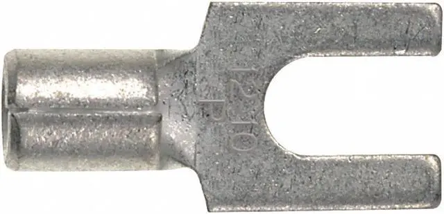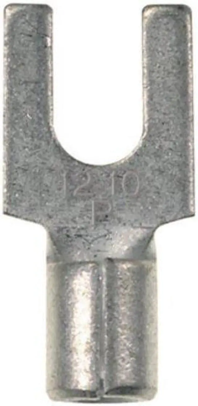 Fork Terminal, Terminal Type Standard, Connection Type Crimp, Insulation Type Bare, Insulation Color Bare, Wire Range 12 to 10 AWG, Stud Size #10, Seam Brazed, Overall Length 0.78 in, Max. Voltage 2, 000 V, Max. Temp. 302 Degrees F, Connection Material Copper, Tongue Width - Wire Connector 0.37 in, Standards CSA Certified, UL Listed