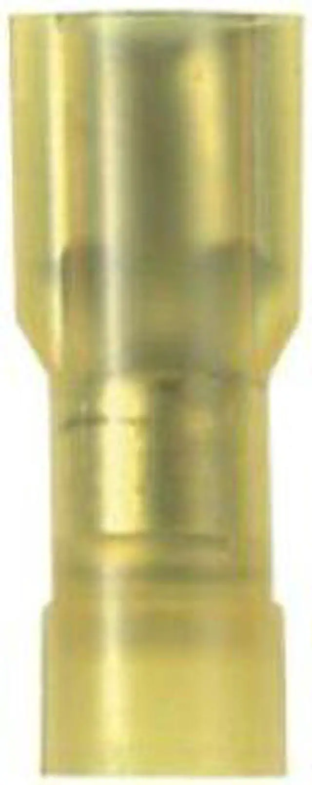 Wire Disconnect, Contact Finish Tin, Contact Material Brass, Disconnect Style Quick Disconnect, Insulation Color Yellow, Insulation Coverage Full Coverage, Insulation Material Nylon, Maximum Temperature 221 Degrees F, Minimum Wire Size 12 AWG, Maximum Wire Size 10 AWG, Maximum Voltage 600 V, Tab Thickness 0.032 in, Tab Width 0.25 in, Terminal Type Socket, Termination Style Crimp, UL 94 Flammability Rating HB, RoHS Compliant Yes, Seam Style Butted, Standards CSA 22.2 No. 153, UL 310. This item has been restricted from sale in the following state (s): []