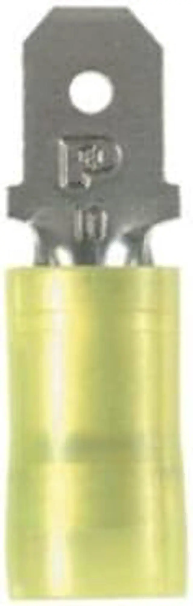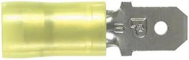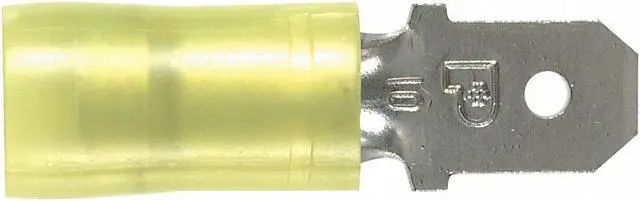 Wire Disconnect, Contact Finish Nickel, Contact Material Copper, Disconnect Style Quick Disconnect, Insulation Color Yellow, Insulation Coverage Partial Coverage, Insulation Material Nylon, Maximum Temperature 221 Degrees F, Minimum Wire Size 12 AWG, Maximum Wire Size 10 AWG, Maximum Voltage 600 V, Tab Thickness 0.032 in, Tab Width 0.25 in, Terminal Type Tab, Termination Style Crimp, UL 94 Flammability Rating HB, V-2, RoHS Compliant Yes, Seam Style Sleeved Barrel. This item has been restricted from sale in the following state (s): []
