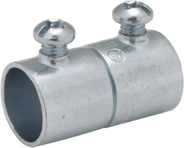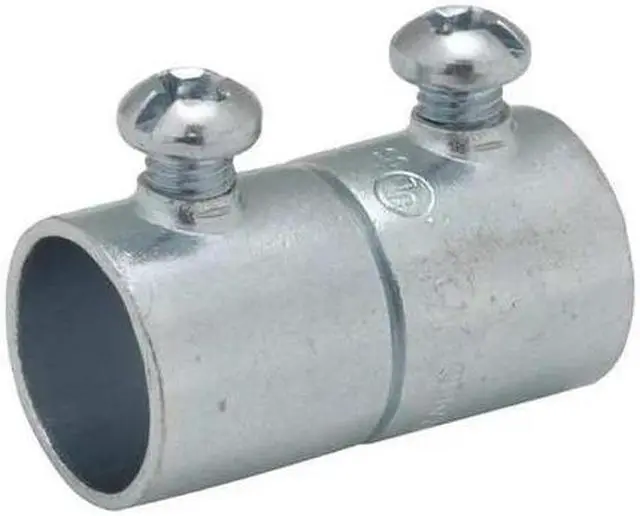 Set Screw Conduit Coupling, Steel, Trade Size 1 1/2 in, Overall Length 3 3/8 in, Finish Zinc Plated, Compatible Conduit Type EMT, Conduit Fitting Type Coupling, Standards cULus Listed, UL 514B, For Use With EMT, For Conduit Type EMT, Overall Height 2 7/16 in, Overall Width 1 29/32 in, Weight 0.39 lb, Color Gray, Compatible Conduit Trade Size 1 1/2 in, Concrete Tight Yes, Connection Orientation Straight, Connection Type Set Screw, Includes Clamp