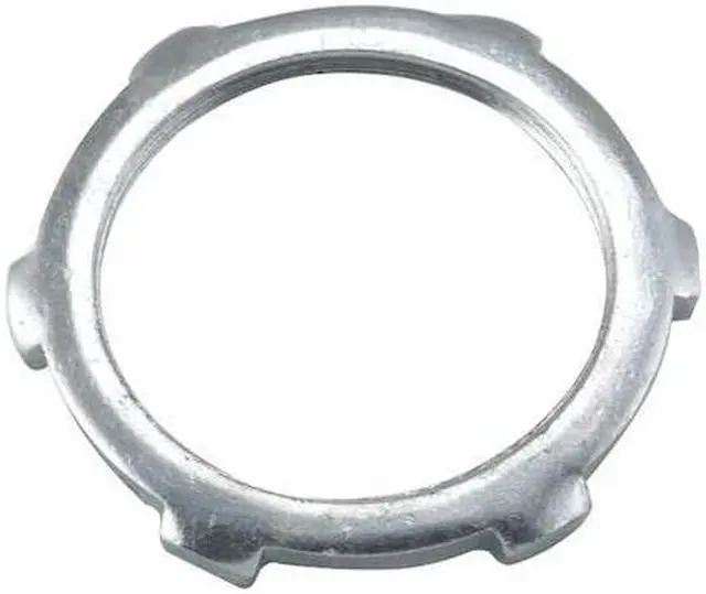 LockNut for Threaded RMC/IMC, Steel, Trade Size 1/2 in, Overall Length 1 1/8 in, Finish Zinc Plated, Compatible Conduit Type IMC, RMC, Conduit Fitting Type Locknut, For Use With Fittings, Threaded RMC, For Conduit Type RMC, IMC, Weight 0.01 lb, Color Gray, Compatible Conduit Trade Size 1/2 in, Includes Clamp. This item has been restricted from sale in the following state (s): []