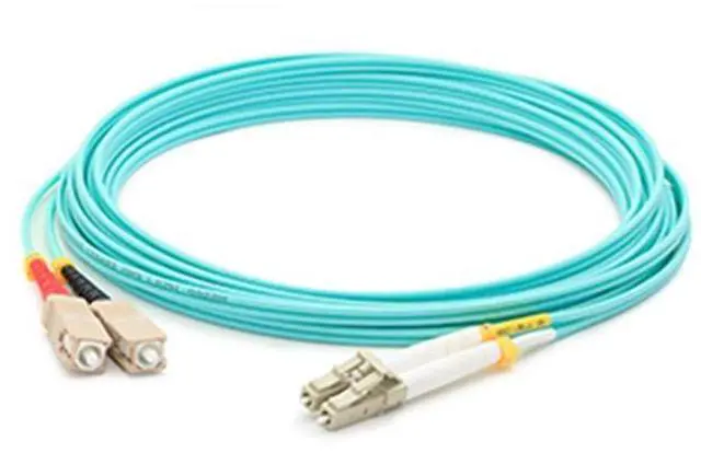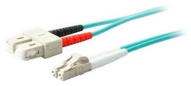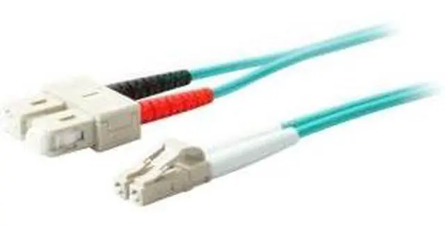 Marketing Information: ADD-SC-LC-9M5OM3 is a 9m Laser-Optimized Multi-Mode fiber (LOMM) Duplex SC/LC OM3 Aqua Patch Cable that offers backward compatibility with existing 50/125 equipment, intended for use with 10Gb Ethernet applications. This OM3 fiber uses an 850nm Vertical Cavity Surface Emitting Laser (VCSEL), and supports 2000 MHz/km EMB at 850nm.
