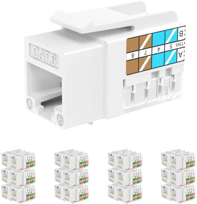• [10G Applications]: Rj45 keystone are golden plated and designed for high-speed data transmission up to 10G speed 550MHZ ethernet network. Rj45 ethernet jack is compatiable with the latest TIA-568.2-D standard.