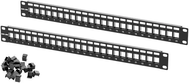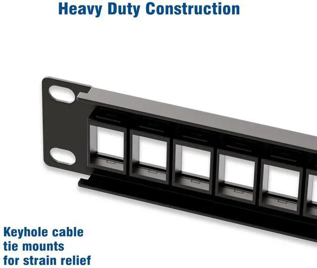 Blank Keystone Patch Panel supports standard sized Cat6 keystone jacks for audio video and data.