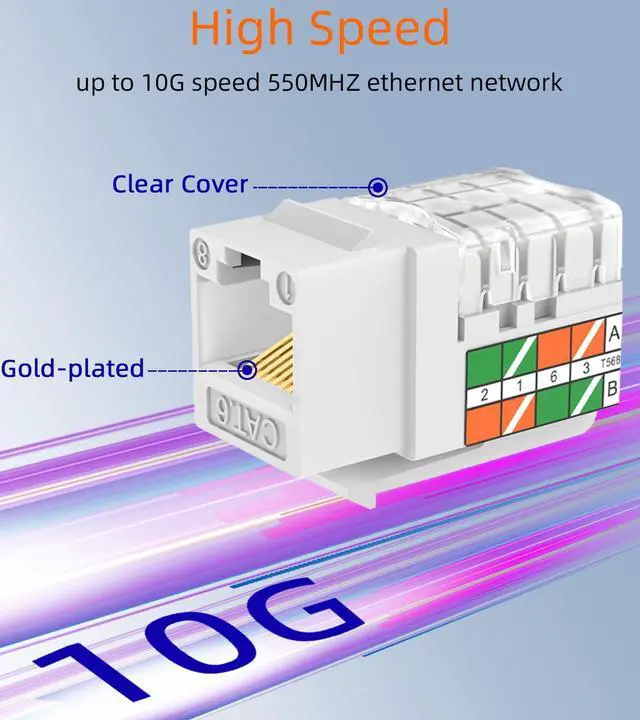 CAT6 keystone jacks are manufactured to meet or exceed standards for high speed networking up to 550MHz.