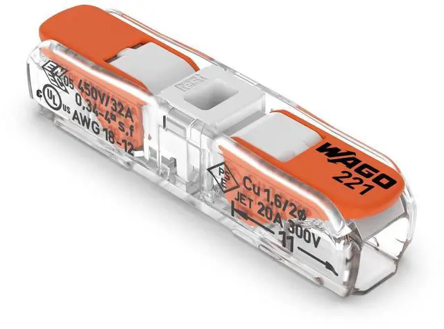 - Easily terminate conductors from 24–12 AWG solid/stranded. 20-12 AWG solid for 221-2401 inline