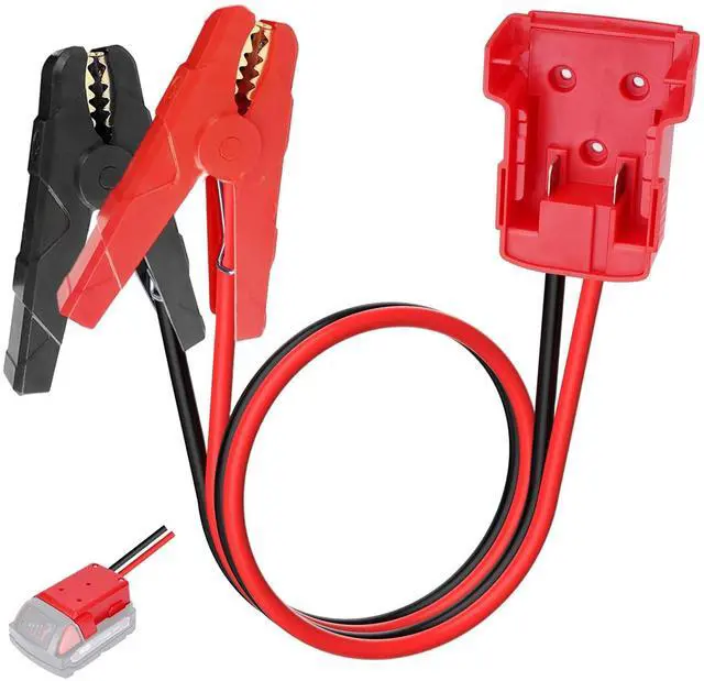 1. Exclusive Milwaukee M18 Compatibility Designed for seamless integration with Milwaukee M18 batteries (18V models), this jumper cable adapter locks securely into the battery groove with one push. Transform your tool battery into an instant car rescue kit no extra converters needed. (Battery not included)