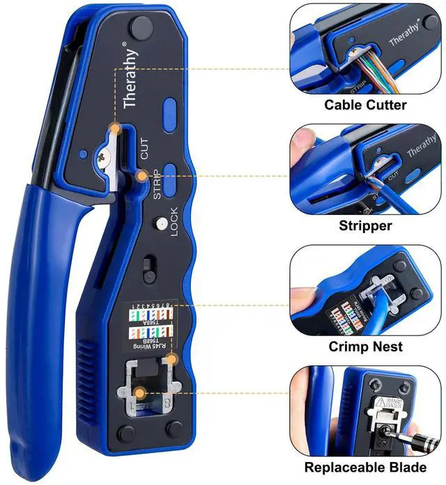 Heavy-duty steel gives the rj45 crimper excellent performance and longevity, and the steel blades are sharp and durable for smooth cutting, with spare blades available.