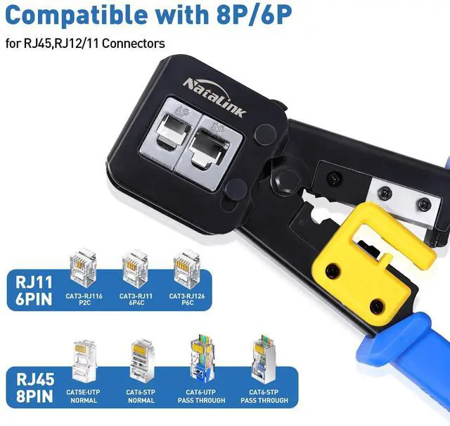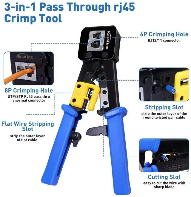 This crimper is ideal for crimping rj45 pass-thru, standard connectors, rj11/12 Standard connectors.