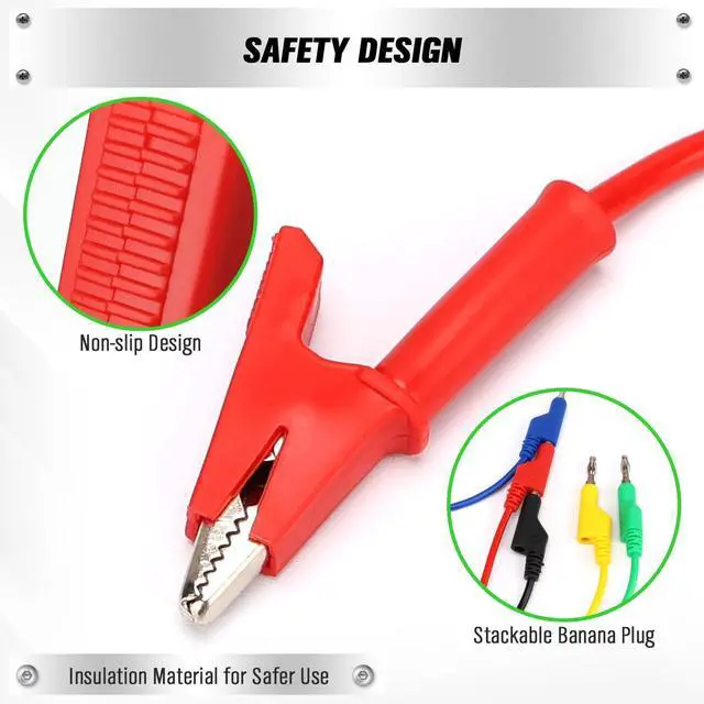 Alligator clips with a maximum opening of 15mm, firmly bite the test point, not easy to fall off