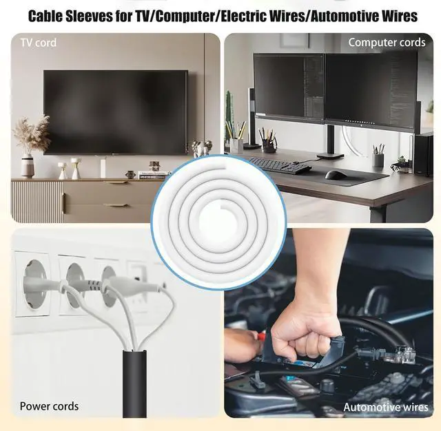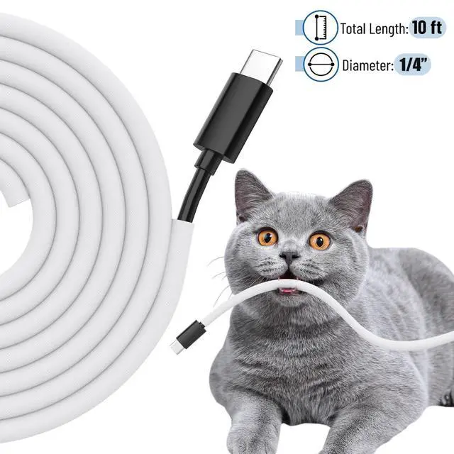 Cord Protectors from Pets No Chew, 1/4 inch 10ft Wire Protector Cord Covers for Pets, Flexible Cable Sleeve Cord Management for TV/Computer/Electric Wires/Phone Charging Cables, White
