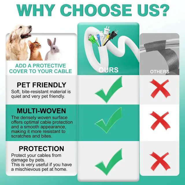 This cable sleeves is specifically designed to prevent pets from chewing and scratching on cords, making it a reliable solution for pet owners.