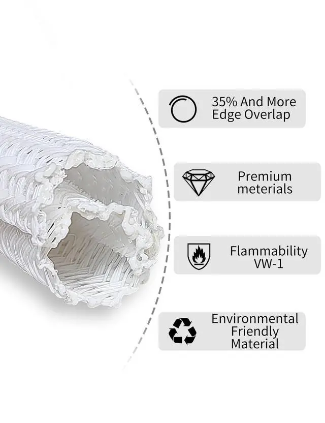 Made from PET monofilament yearns and polyester fiber. Split and self-closing design enables the irregular shape to be covered very well and convenient. Easy on and off installation applied for double-ended closed workplace. It instead of conventional slit loom and spiral wrap to provides acoustical noise suppression.