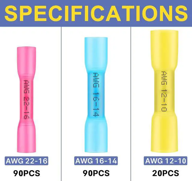 - 200PCS Heat shrink butt connectors(3 Sizes)