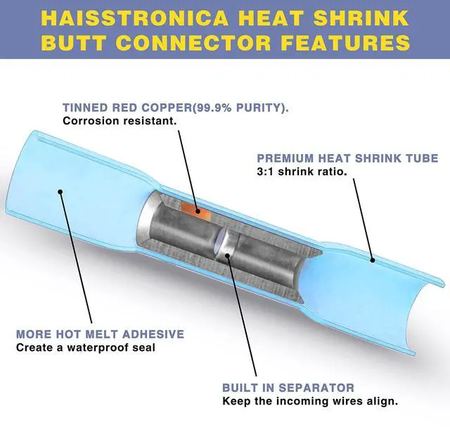 haisstronica 200PCS Heat Shrink Butt Connectors Set,this is a really solid set if you do any electrical work on cars or boats