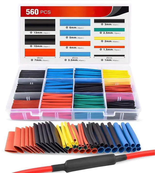 Comes with 560pcs heat shrink tubing assorted in the plastic box,12 Specifications,5 colors, 560pcs, satisfied for your different needs.