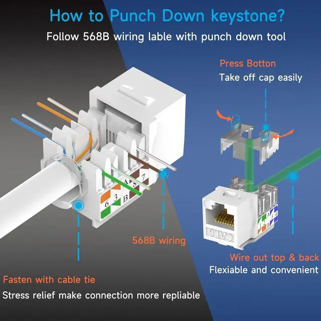 • Ultimate Performance: Rj45 keystone has ultimate performance up to 10 Gigabit transmission. Meet or exceed TIA EIA 568 standard make these cat6 punch down block jacks perfect for use in toay's high speed networks.