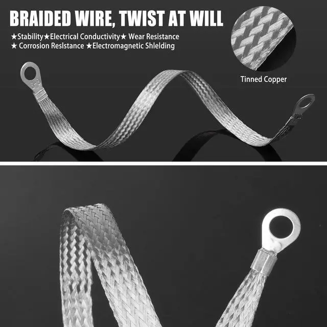 Excellent ConductivityThe copper wire provides excellent current transmission, the tinned surface prevents oxidation or corrosion of the grounding busbar.The ground strap has good stability, and can be used with confidence.