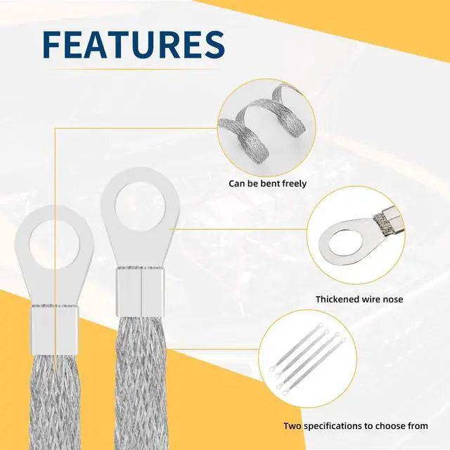 The braided grounding strap design ensures low resistance, high current transmission, and superior heat dissipation. Perfect as engine ground straps or battery straps, preventing voltage drop and improving vehicle electrical stability.