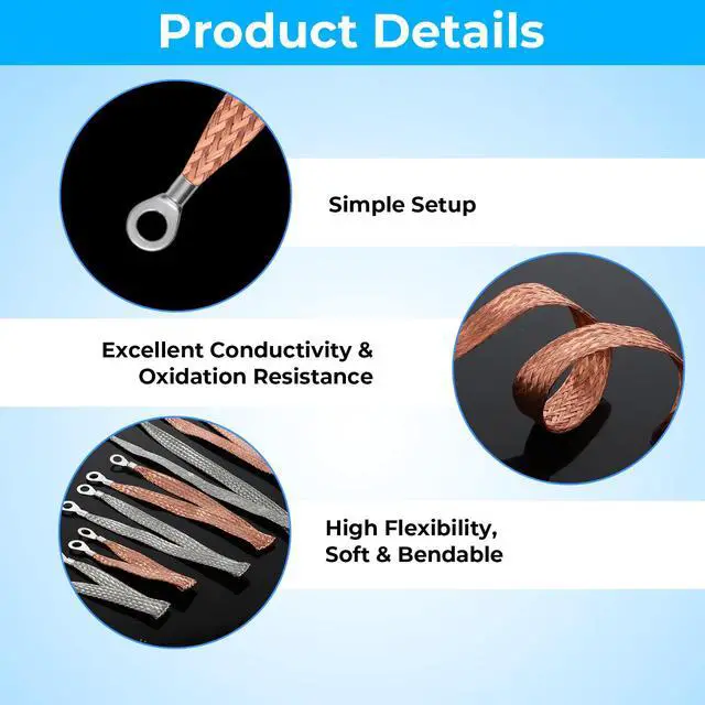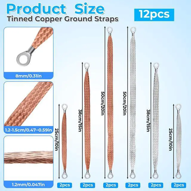 Product Name:12 Pcs Automotive Ground Straps, 10/15/20 Inch Universal Engine Grounding Cable Strap Kit with Ring Terminals Braided Copper Tinned Ground Wire