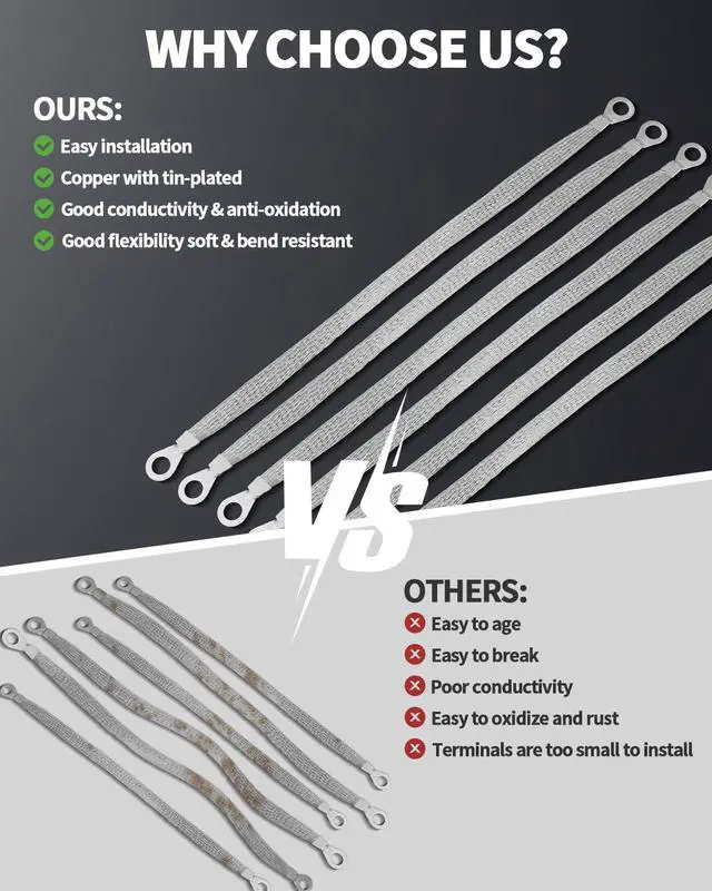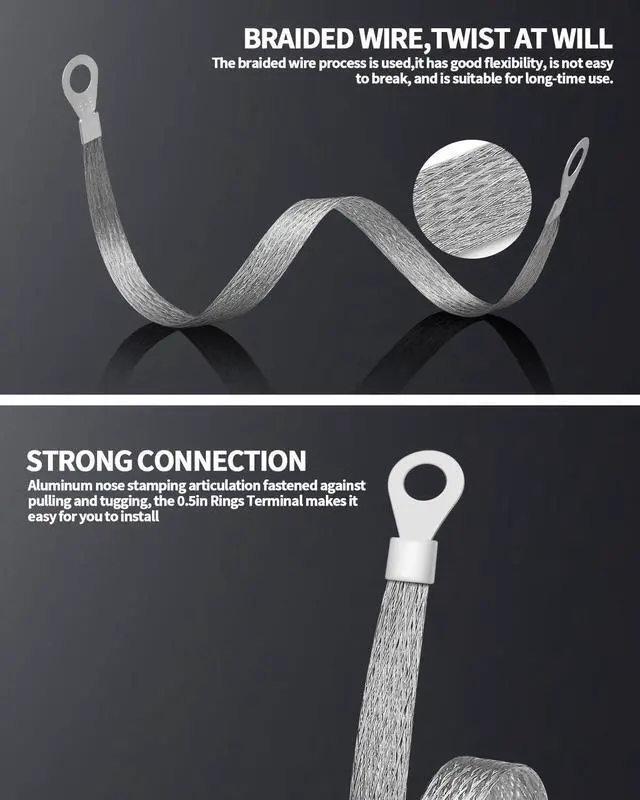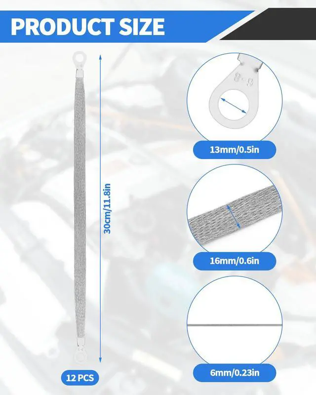 12 PCS 12 inch Universal Automotive Braided Copper Ground Strap