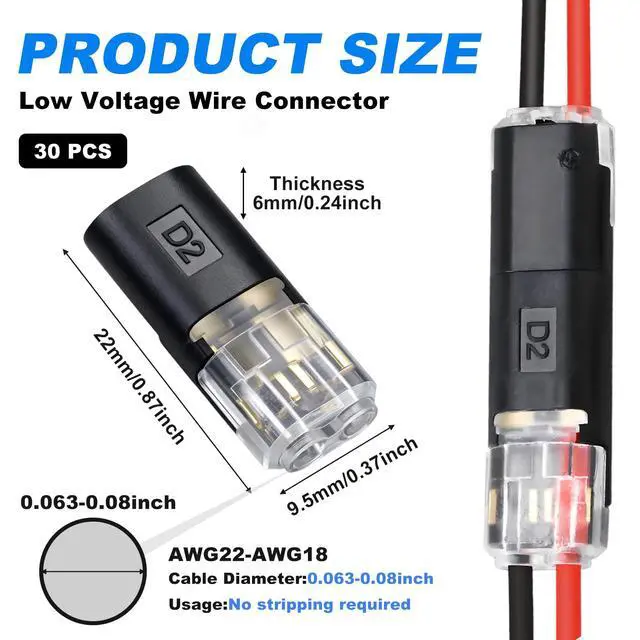 Experience the convenience of our innovative wire connectors featuring tool-free installation. Simply lift, insert, and close for secure connections in seconds. Perfect for LED strips, speakers, and various low-voltage applications
