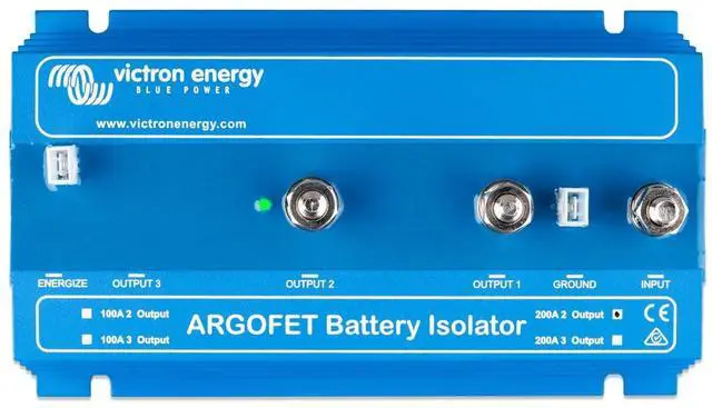 Victron Energy Argofet battery isolators 200-2AC, allow simultaneous charging of two batteries from one alternator, without connecting the batteries together