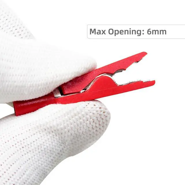Make something different. At , we strive to provide high quality tools and accessories that inspire our consumers to live a more convenient and enriched lifestyle. Our unlimited passion for innovation and solutions drives us to move forward. We have strong belief that only if we have a deep understanding of peoples needs and desires, we can make our products become different, which may make your life different. Features: Material: PA, Copper Nickel Plated Color: Red, Black Max.Voltage&Current: 30V/10A Max Opening: About 6mm Overall Length: 41.5mm Connection Type: 2mm Female Socket