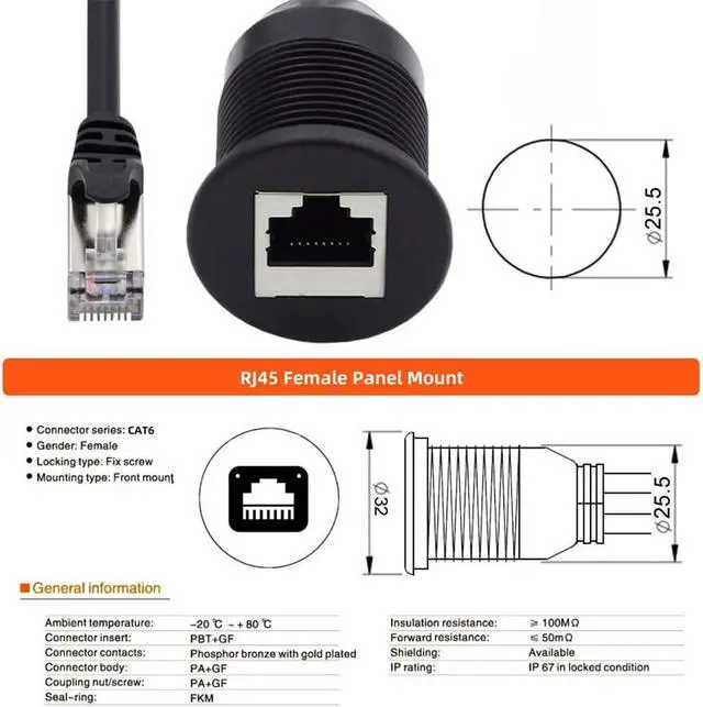 1m Waterproof Dustproof Locking CAT6 RJ45 Male to Female Lan Ethernet Network Extension Cable Car Panel Mount Design