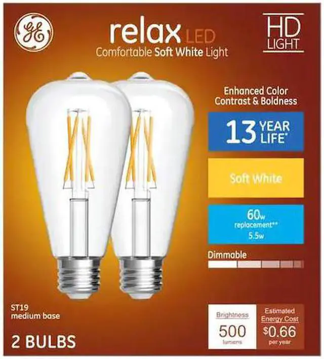 GE High Definition bulbs are an improved, KEY_TAB energy-saving LED that enhance the appearance of colors. Experience the KEY_TAB difference with bolder colors and enhanced contrast vs. standard GE LED KEY_TAB bulbs. Relax HD light offers a warm, soft white light perfect for KEY_TAB comfortable moments and cozy spaces. Use relax HD light in spaces like KEY_TAB bedrooms, family rooms and dining rooms.