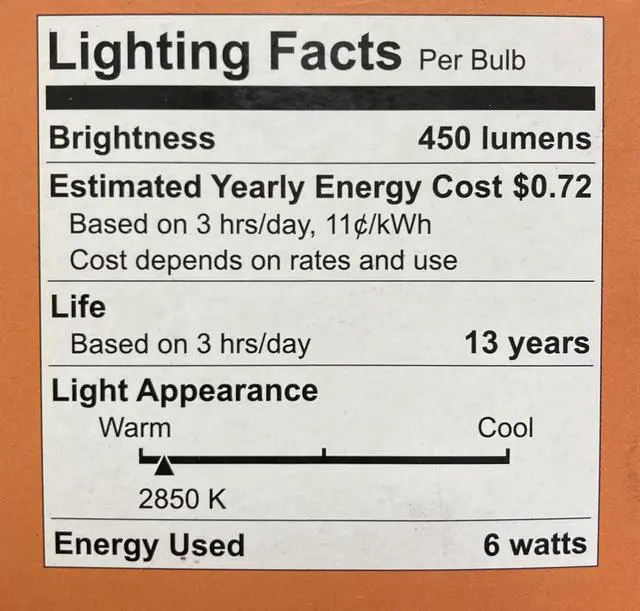 CFL Spiral bulb: instant full brightness, contains no mercury and is rated to last 50% longer than a 10, 000 hour CFL while using 23% less energy to provide 450 lumens.