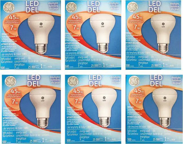 (6 bulbs) GE 34310 LED Daylight R20, 45 watt replacement, Medium Base, Dimmable, 500 lumen LED Light Bulb