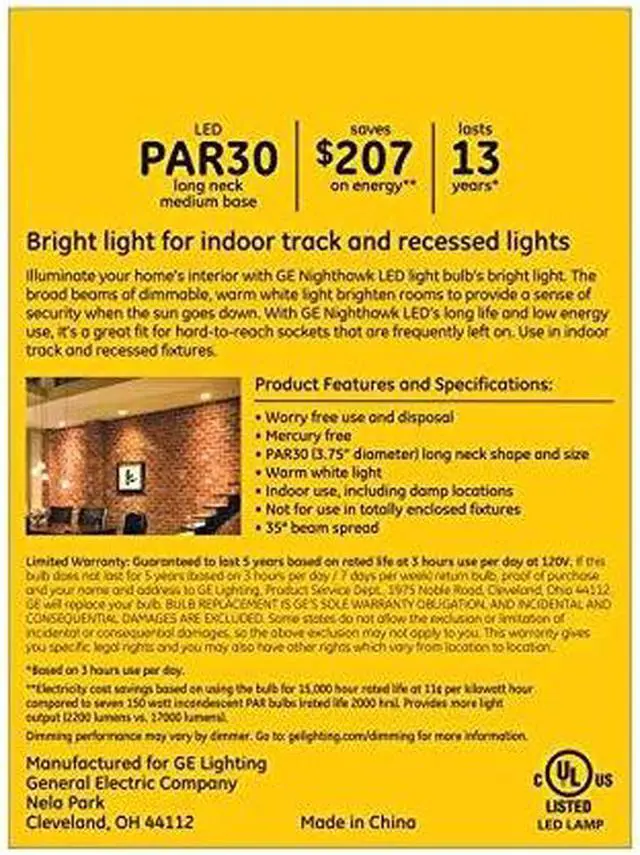 fixtures? this GE Nighthawk Warm White LED bulb is rated to last 13 years based