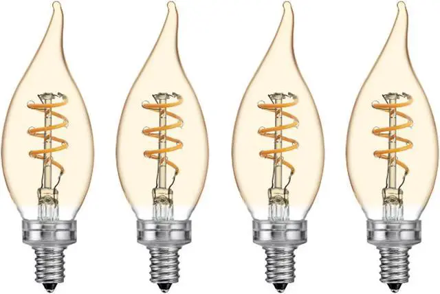 - GE?s KEY_TAB Vintage Style LED Amber Finish Decorative Bent Tip light bulbs combines KEY_TAB the retro look of antique incandescent bulbs with the benefits of LED. A KEY_TAB dimmable warm, candlelight glow and golden-tinted glass recreate the KEY_TAB vintage style light bulb. Vintage Style LED bulbs are rated to last 13 KEY_TAB years based on 3 hours per day use. The long life and low energy use of KEY_TAB GE LED vintage style bulbs will help you save money on energy. They KEY_TAB feature instant full brightness and are free of mercury for easy KEY_TAB disposal. Use it in pendants, chandeliers and decorative fixtures.