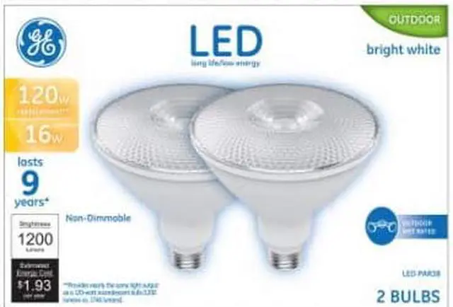GE, 2 Pack, LED16P38/WWFLB/10K-2, 16W, Bright Light Light Color, Clear Bulb