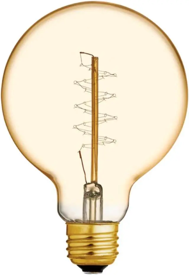 GE's Vintage Style 60-Watt Amber Finish G30 Globe incandescent light bulbs replicate the retro look of antique incandescent bulbs. A warm candlelight glow and golden-tinted glass recreate the vintage light bulb. It's rated to last 1.4 years based on 3 hours use per day. Use the Vintage Style G30 globe (3-3 with 4-inch diameter) bulb with a medium base in dimmable bathroom vanity lights, makeup mirrors and pendant lighting.