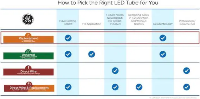 - Why make the switch to LED? GE's LED tubes are rated to last 20,000 hours. They provide long 9-year life based on six hours use per day, so you?ll replace less often. They use less energy than a 32-Watt T8 with nearly the same light output helping you save money on energy. And, they?re mercury free. Use Daylight T8 LED tubes in active spaces and commercial applications like light industrial and clean rooms to provide very cool, bluish-white light.