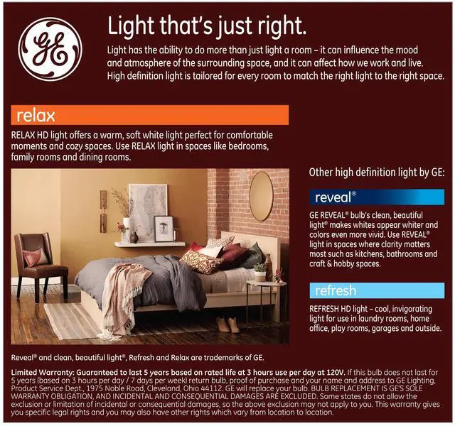 enhanced contrast vs. Standard GE LED bulbs. Relax HD light offers a warm,