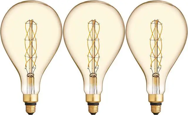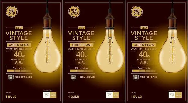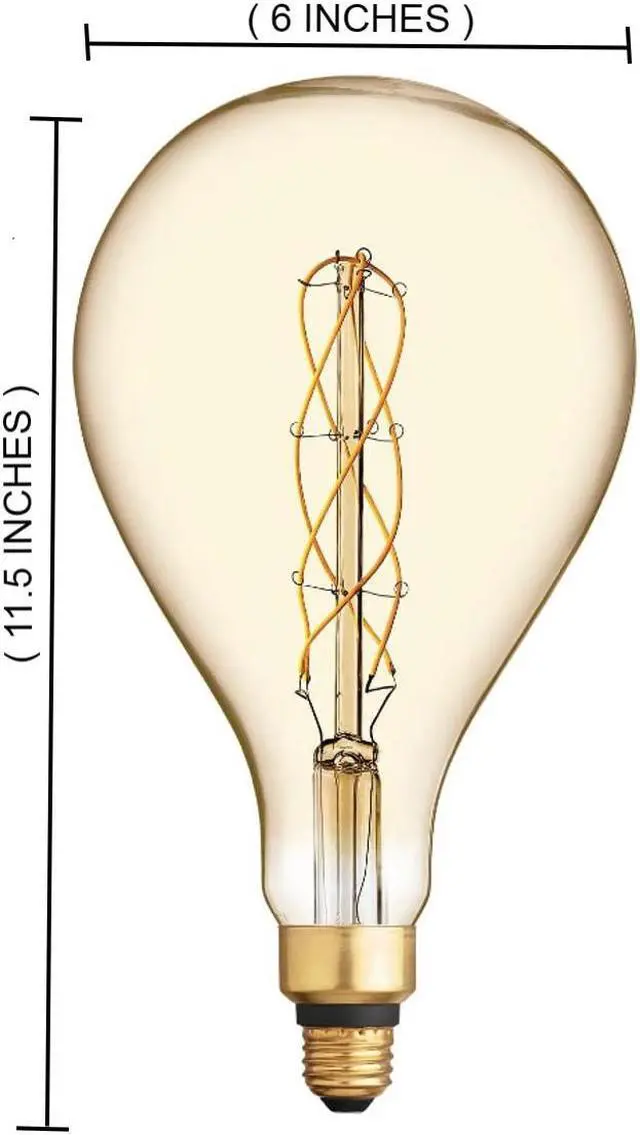 Large Vintage Style Spiral Weave Filament 40-Watt Replacement KEY_TAB Amber Finish PS52 Pear-Shaped LED light bulb creates a dramatic and impressive focal KEY_TAB point in any room. The sizeable glass globe and delicate weave filament KEY_TAB beautifully accent traditional or modern fixtures. A warm candlelight KEY_TAB glow and golden-tinted glass recreates the retro feel of Edison-style KEY_TAB incandescent bulbs. It features instant full brightness KEY_TAB and is free of Mercury for easy disposal. Use the Large Vintage Style KEY_TAB PS52 Pear-Shaped bulb with a medium base in dimmable pendant lights, KEY_TAB table lamps and floor lamps. Remove the lamp shade and highlight the KEY_TAB refined style of Large Vintage Style LED bulbs. Pair with our Pendant KEY_TAB Fixtures for an enhanced look.