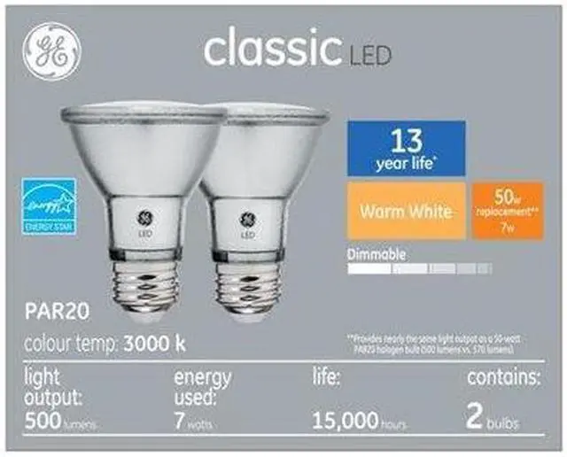 - Energy cost savings vs 50-Watt PAR20 halogen bulbs