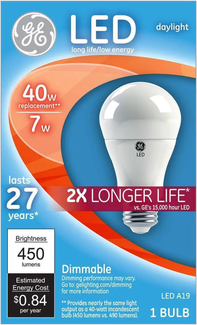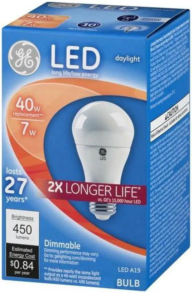 GE KEY_TAB Daylight LED light bulbs offer outstanding energy efficiency and KEY_TAB long-lasting performance. It offers cool, bluish-white light. Use GE LED KEY_TAB general purpose light in table lamps, sconces and open fixtures to KEY_TAB replace 40-watt incandescent bulbs. It?s great for frequently used KEY_TAB fixtures?GE LED?s long life and low energy use will help you save money KEY_TAB on energy.