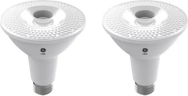 (2 bulbs) GE LED PAR30 long neck, Indoor Spotlight, warm white HD, 75 watt equivalent, Dimmable, 950 lumens, uses only 12 watts, LED Spotlight Light Bulb