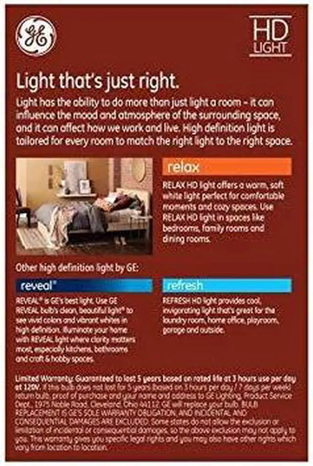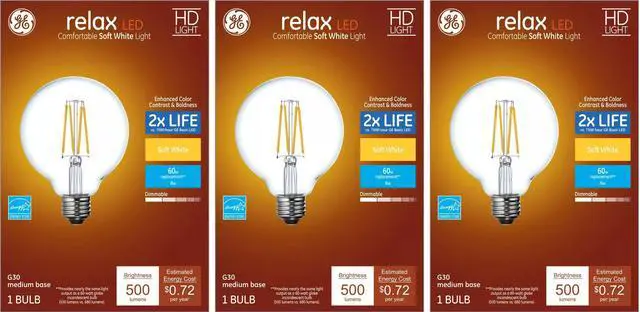 GE Relax HD Soft White LED 60-Watt Replacement, Clear Finish G30 Globe light bulbs provide enhanced color contrast and boldness versus standard LED bulbs.