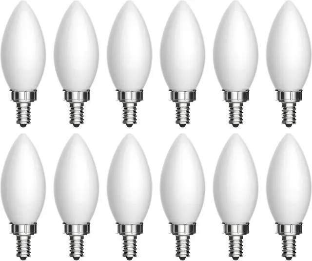(case of 12) GE LED Decorative Chandelier Bulb, Candelabra base, frosted white, 3.5 watts, 350 lumens, 40 watt replacement, dimmable, blunt tip