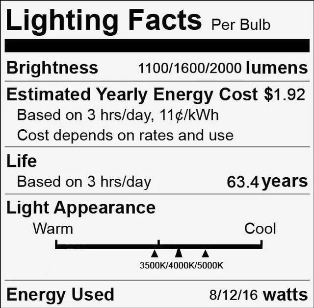 - 1100/1600/2000 lumens