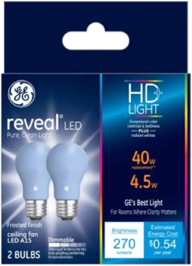 Ge 31885 A15 Reveal Hd Ceiling Fan Led Light Bulb, 4.5 Watts