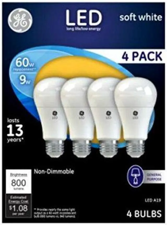 General Electric 61986 4PK WHT 4 Pack 9W Soft White A19 Shape LED Light Bulb
