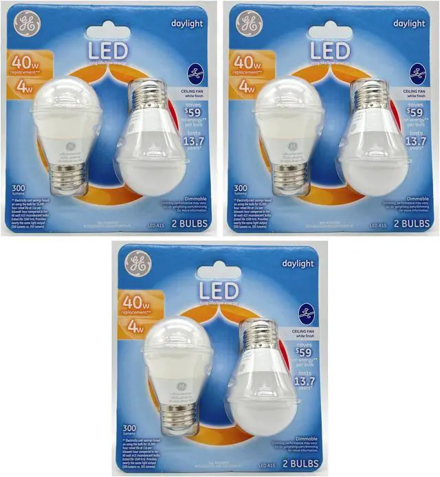 GE LEDs offer outstanding energy efficiency, long-lasting performance and just-right brightness, all in one package. They?re dimmable and illuminate your home with soft, warm light. Use this GE LED light bulb in ceiling fans, small table lamps and open fixtures. There?s no filament inside the LED bulb, so it resists vibration better than a standard light bulb. It?s great for frequently used fixtures GE LED?s long life and low energy use will help you save money on energy.